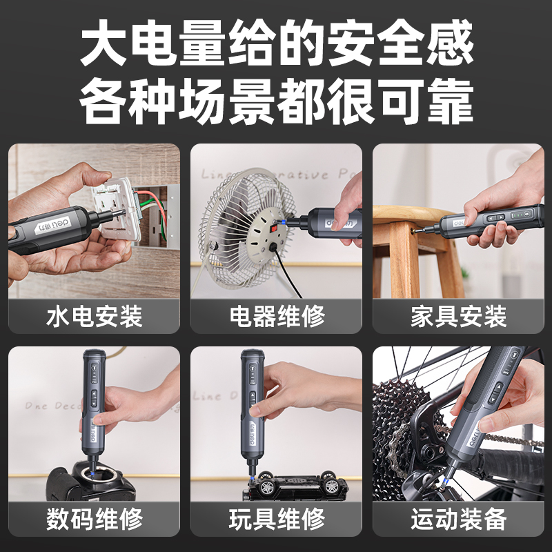 得力电动螺丝刀锂电起子机家用充电式小型电批迷你电动钻工具套装