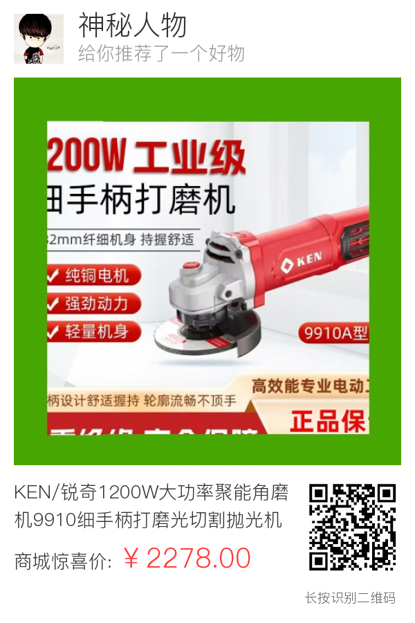 KEN/锐奇1200W大功率聚能角磨机9910细手柄打磨光切割抛光机